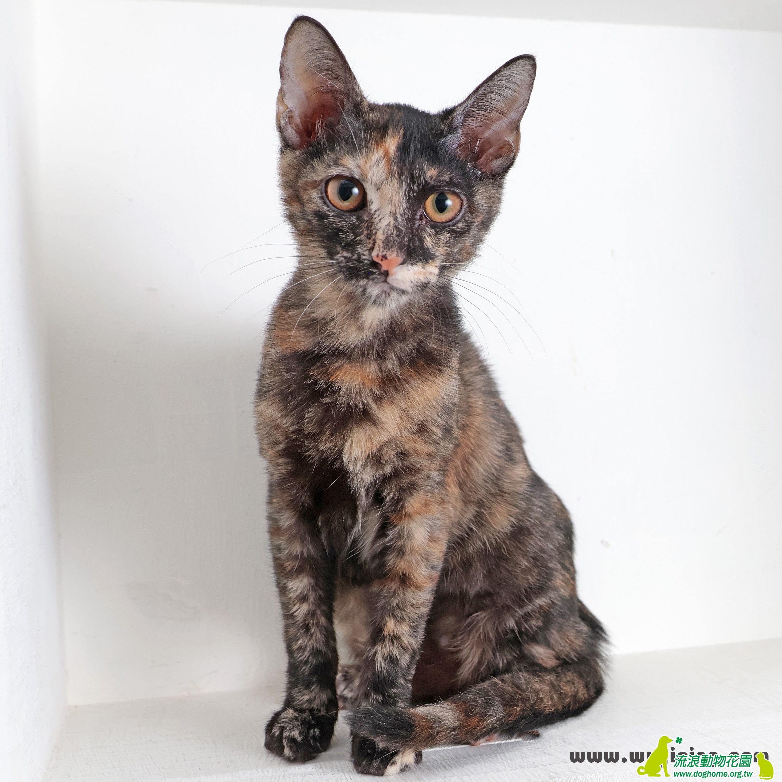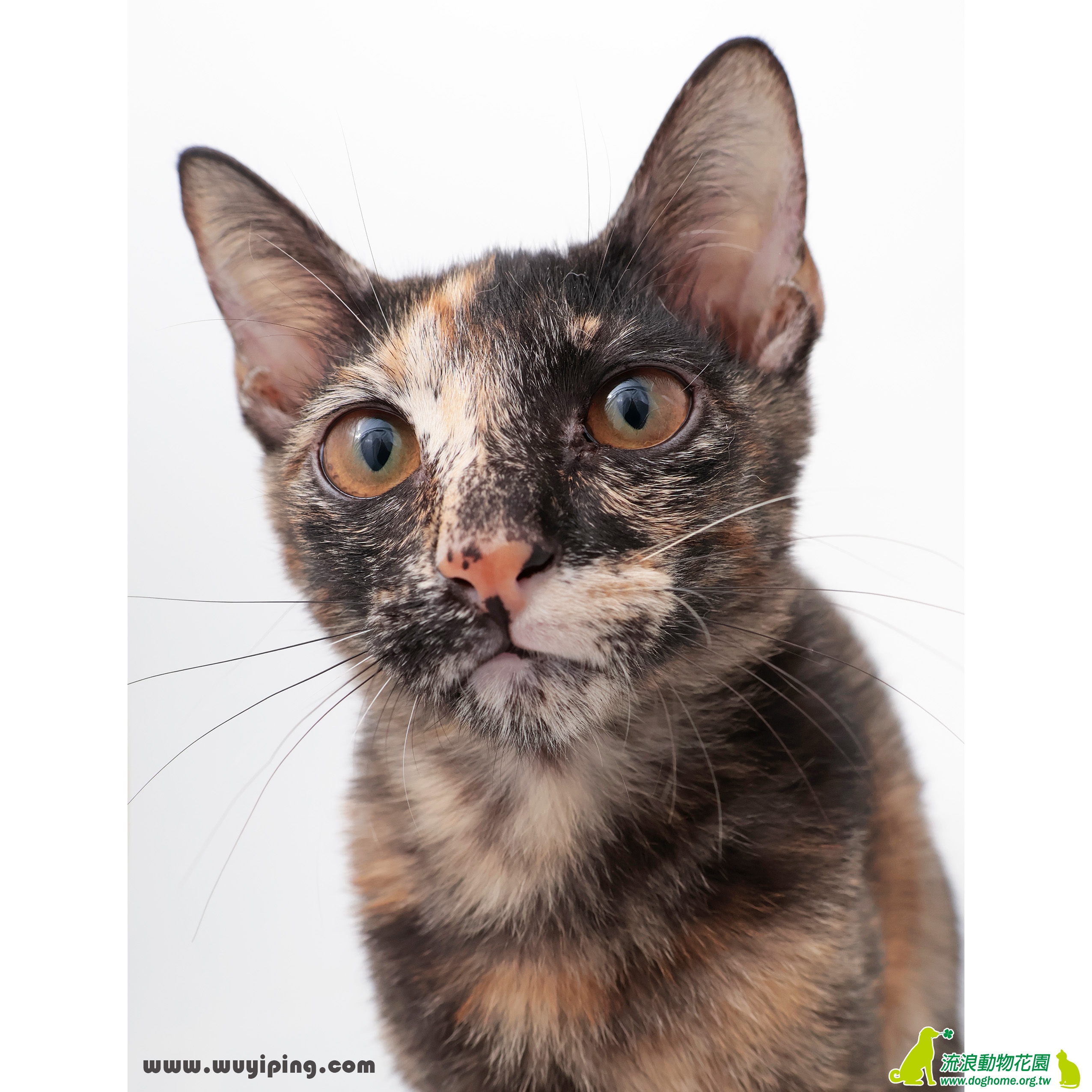 怎樣算是純呢?當許多人在爭論某隻玳瑁因為有很多白色的部分而應該是三花時,這隻絕對沒有這樣的困擾,花到徹底,四隻腳都不一樣,每平方英吋就有好幾百種顏色,艾司貓爾光刻機都畫不出來,護國神山等級的品質,帶回家後有人去你家看貓還說她是三花就把他趕出門跟他絕交。更特別的是鼻子竟然還是粉紅色的,以我閱玳瑁貓無數的經驗來看,大約每一萬隻才會出現一隻,不信就算了。
