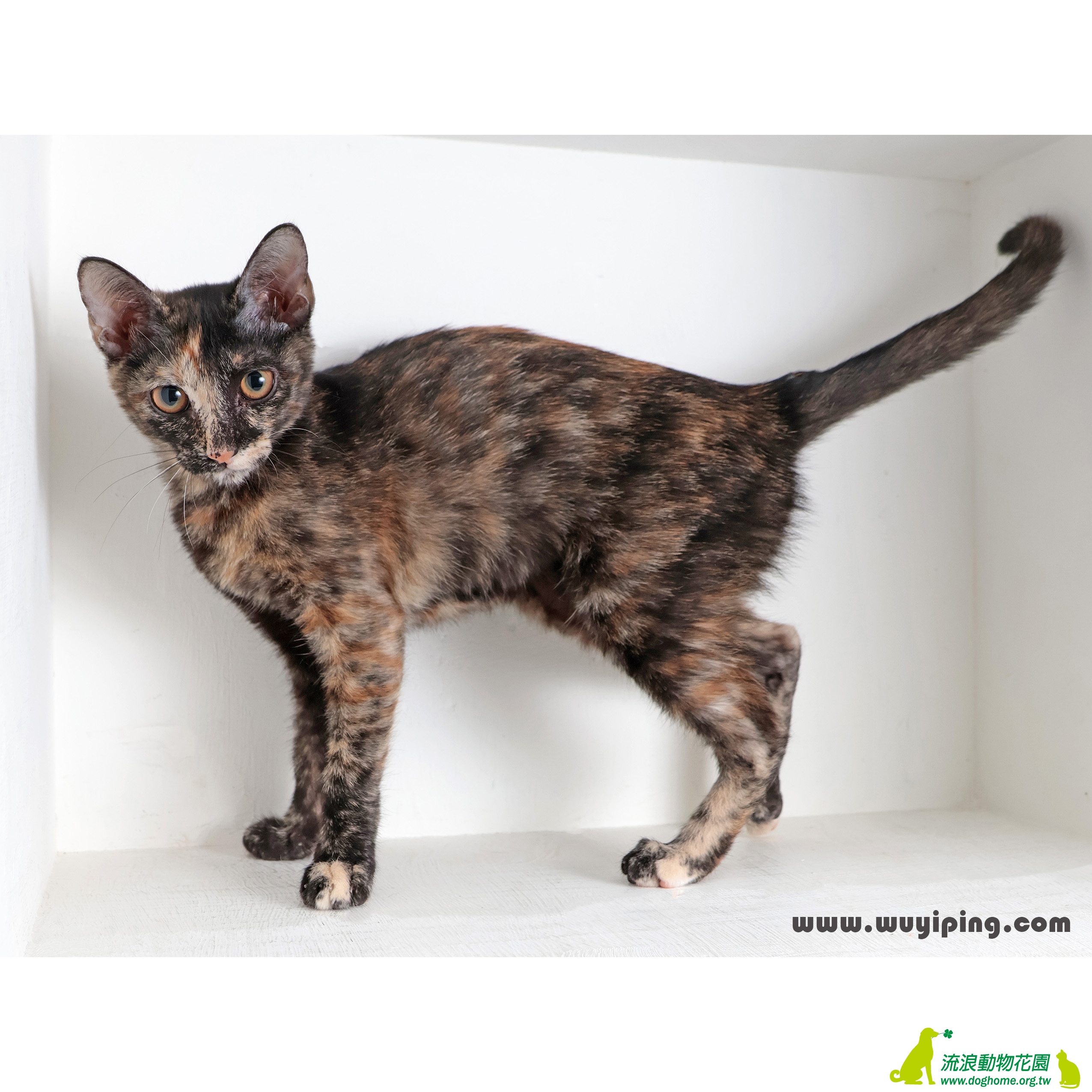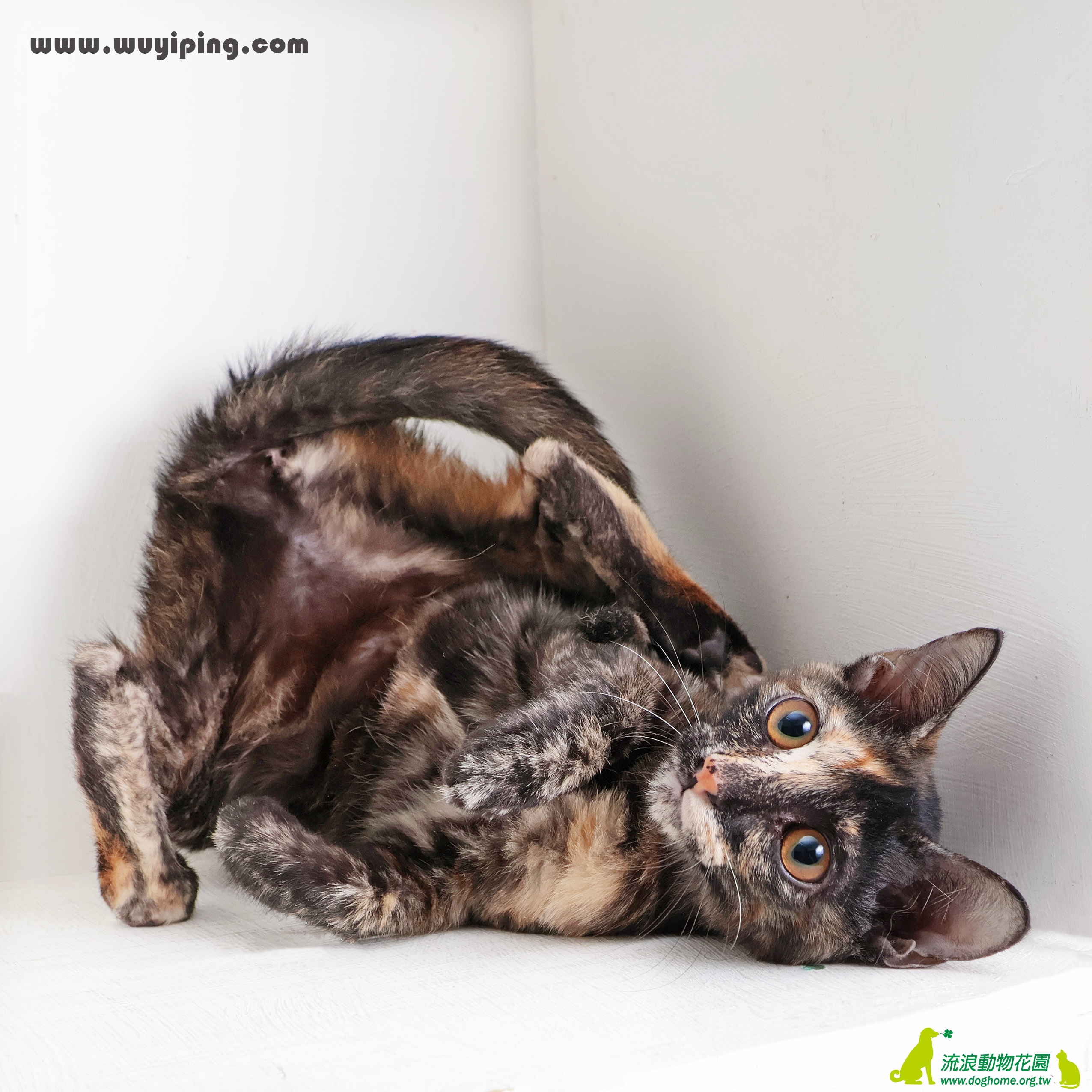 在送養的世界裡,只要跟品種沾上一點點邊就會有很多人搶著要,例如看起來像暹羅的黑臉貓、鼻子很扁的眼淚貓,身上有蚊香圖案的胖子貓,而玳瑁則是另一個極端,總是被冷落無視,就像代課老師,總小學念到高中,總會出好幾位,但沒人會記得他們的名字與長相。而這位「玳課老師」長得這麼特別,個性又好,教學認真,一堂課就會讓你終身難忘,春風化雨影響你一生。
