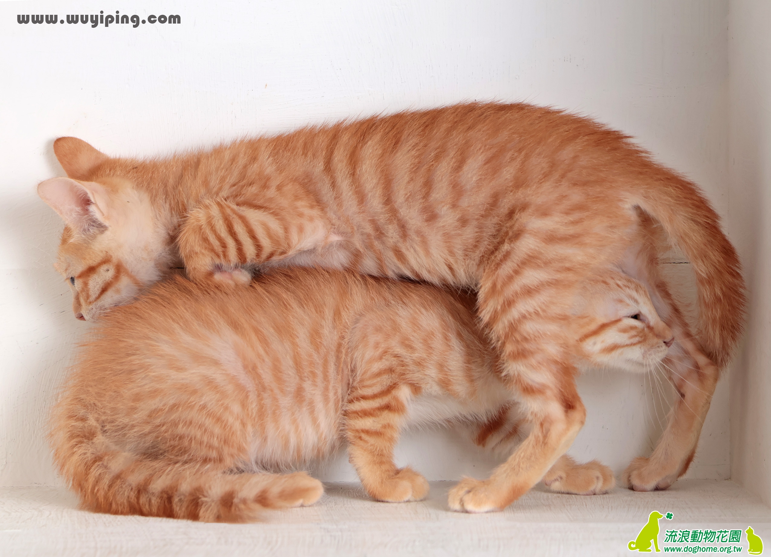 女神?對,這兩隻都是母的,如果世界第一稀有是公的玳瑁,那第二就是母的橘貓了,而且還一次兩隻母橘,比中樂透還難,過年不要買彩卷不要買刮刮樂了,浪費錢,把這兩隻帶回去,就能升官發財前途無量,然後就能買一堆貓用品貓玩具,更浪費錢。